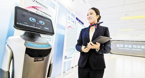 近日,雄安机器人大厦内,工作人员向参观者展示机器人产品。 河北日报记者 刘光昱摄