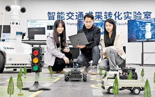 坐在电脑前,轻点鼠标,屏幕上的蓝色目标车以设定的速度通过十字路口……“你看,这辆车的速度我们人为设定得很慢,所以其通过路口时后面压了一溜车。通过这个操作,大家就可以直观理解‘幽灵路口’的概念。”11月5日,雄安国创中心科技有限公司(以下简称“国创中心”)智能交通研究所,一位工作人员向记者展示他们联合中雄智图(雄安)科技有限公司(以下简称“中雄智图”)以及北方工业大学共同研发的“车联网与智能控制实验室”教培系统。
